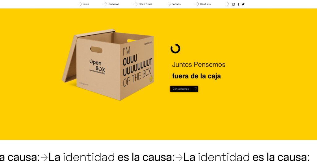 Elaboración de sitio web openboxpr.com para la empresa de relaciones publicas Open Box.